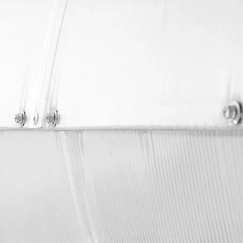 Во-вторых, довольно сложно установить листы поликорбоната в стыковочные планки, они очень жесткие и неохотно принимают форму купола. Почему было бы не предусмотреть обшивку крышек цельным листом поликорбоната, думается, что жёсткость бы не пострадала.